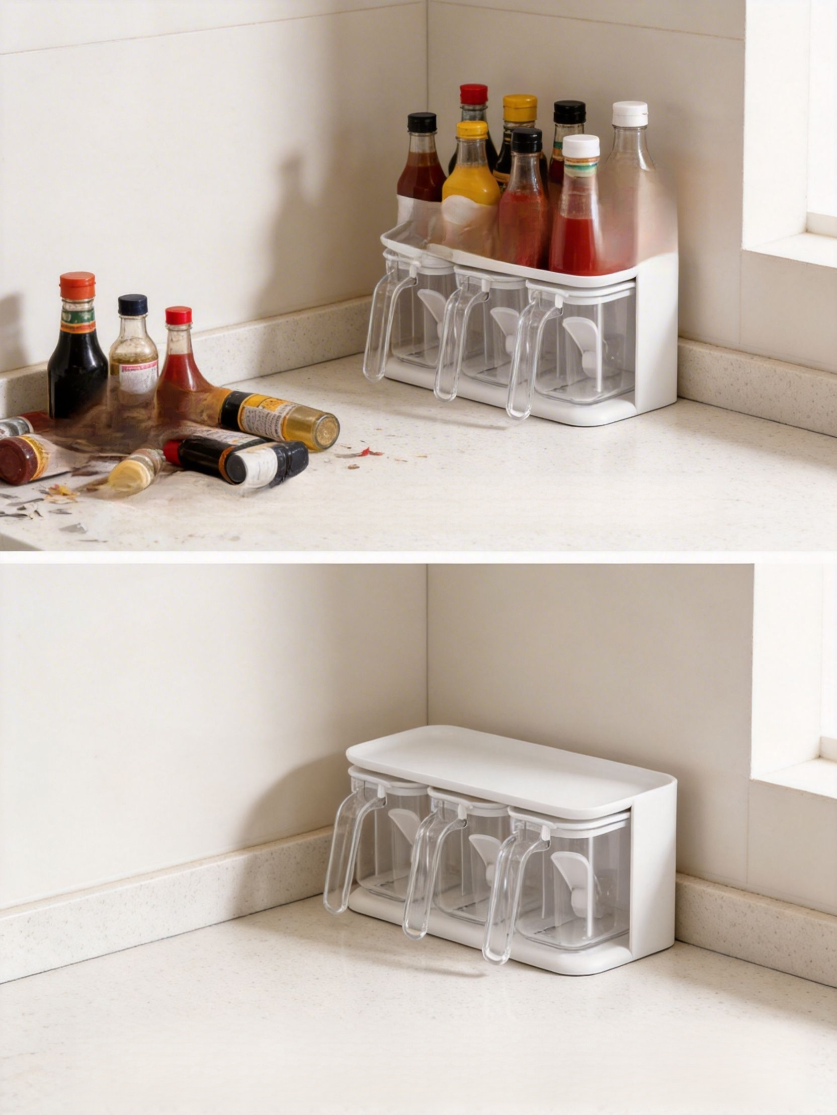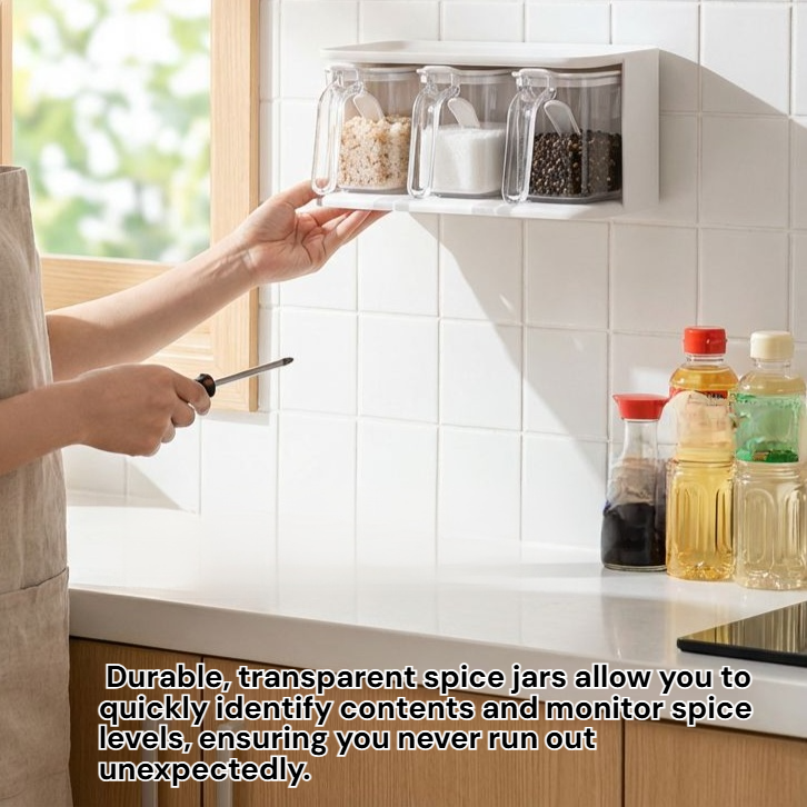 ● Non-slip base and secure slots prevent jars from tipping over, ensuring your spices are always safe and within easy reach while cooking.